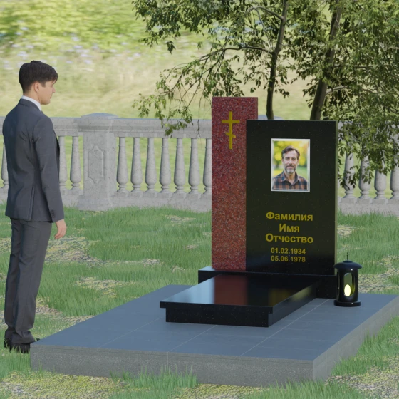Кому подойдет: Благодаря своей строгой геометрии и асимметричному дизайну, этот памятник является универсальным и благородным решением. Лаконичность форм и отсутствие излишнего декора делают его идеальным для оформления мужского захоронения (отцу, мужу или брату), подчеркивая твердость и достоинство. В то же время, при использовании цветного гранита или светлого мрамора, модель прекрасно подойдет для женского или семейного мемориала. Это выбор тех, кто ищет баланс между традиционными символами веры и современной европейской архитектурой в ритуальном искусстве.