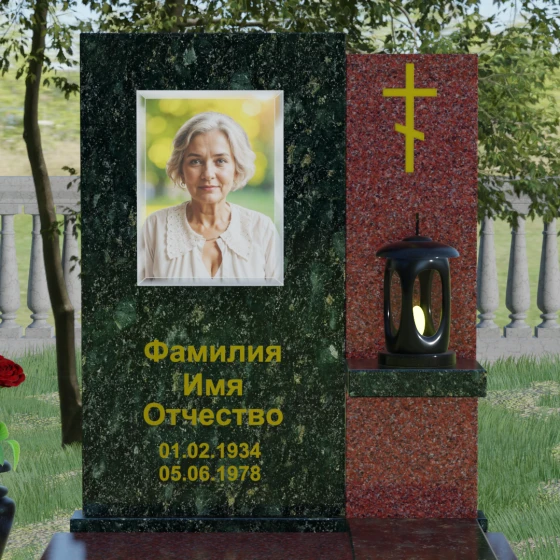 • Индивидуализация: Вы можете заказать это ритуальное изделие в одном из 8 цветовых решений. На выбор доступны: строгий черный гранит Габбро-диабаз, величественный красный Лезниковский, благородный Дымовский, изысканный зеленый Балтик Грин, мерцающий Блю Перл, уникальный Амфиболит, светлый Мансуровский или чистейший белоснежный мрамор Тассо. Такой выбор позволяет подобрать камень, который максимально точно отразит характер и жизненную энергию ушедшего человека.