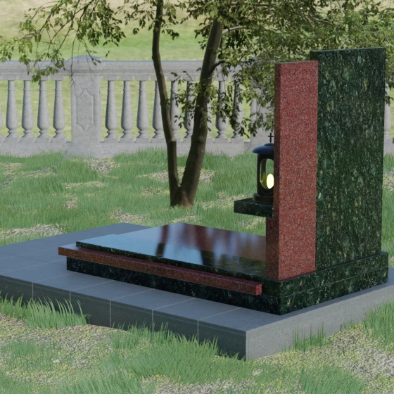 Кому подойдет: Данная модель является универсальной благодаря своему лаконичному и одновременно глубокому дизайну. Она станет достойным выбором как для мужчины, так и для женщины. Строгость линий и золотые акценты подчеркнут статус и мужество, а плавные изгибы верхней грани привнесут нотки женственности и нежности. Этот мемориал выбирают те, кто хочет выразить глубокое уважение и создать на кладбище место, преисполненное достоинства и тишины, где каждый элемент — от лампады до фактуры камня — говорит о вечной любви.