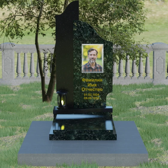 Для этой формы идеально подходит классическое расположение портрета на левой, более широкой части стелы. Черная зеркальная поверхность Габбро-диабаза позволяет нанести лазерную гравировку высочайшей четкости, где будут видны малейшие черты лица и детали одежды. Текст и эпитафии гармонично смотрятся как в традиционном исполнении, так и с применением сусального золота или глубокой вырубки знаков.