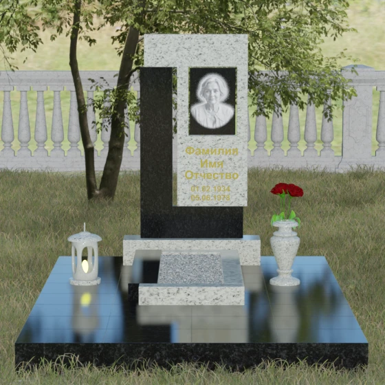 Архитектурное решение стелы предусматривает выделенную зону для портрета, которая может быть оформлена как в виде классической фотокерамики в овальной нише, так и методом художественной лазерной гравировки. Золоченая или вырубленная в камне надпись располагается на контрастном фоне, что обеспечивает отличную читаемость даже на расстоянии. Мы предлагаем этот проект в 8 уникальных цветовых исполнениях, что позволяет наделить мемориал индивидуальным характером. Вы можете выбрать глубокий черный гранит Габбро-диабаз, благородный серо-белый Мансуровский гранит, насыщенный красный Лезниковский, строгий Дымовский, изысканный Блю Перл с его синими искрами, текстурный Амфиболит, зеленый Балтик Грин или белоснежный мрамор Тассо.