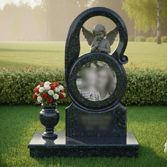 Создание достойного места памяти — это тонкое искусство, требующее не только мастерства камнереза, но и глубокого понимания символизма. Представленное ритуальное изделие (Артикул 717) является эталоном художественного подхода к мемориальной пластике. В этой модели гранит перестает быть просто холодным камнем, превращаясь в пластичную форму, выражающую бесконечную любовь и опеку высших сил над ушедшим близким.