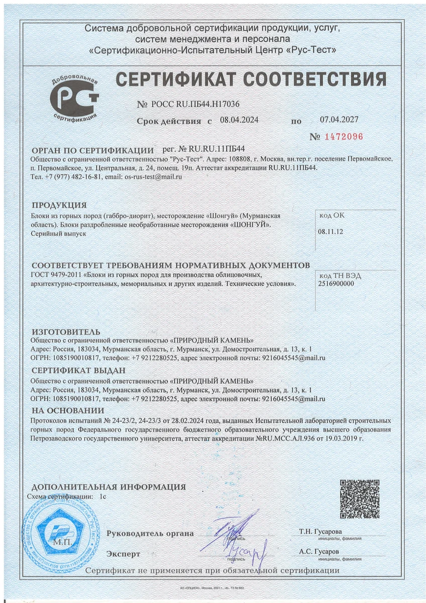 Сертификаты: Гарантия качества и безопасности камня «Мастер Каменев»