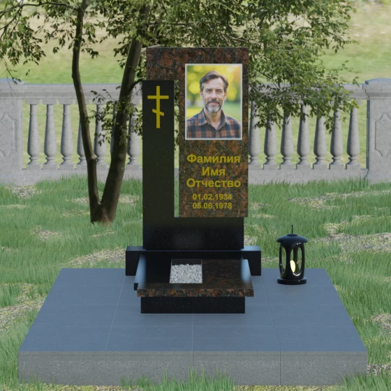Для того чтобы мемориал максимально точно отражал характер и личность покойного, мы предлагаем выполнение этой модели в 8 цветовых вариациях. Вы можете выбрать комбинацию из 7 видов гранита или использовать благородный мрамор:
