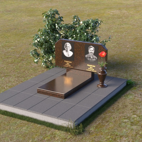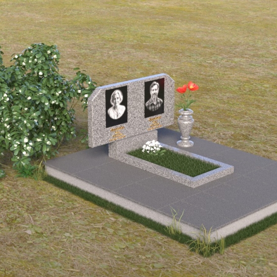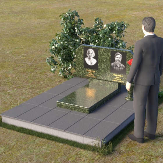 Форма стелы этого памятника предоставляет широкие возможности для оформления. Помимо портретов, на ней можно разместить эпитафии, религиозные символы или другие памятные надписи. Расположение портретов может быть как горизонтальным, как показано на изображении, так и вертикальным, в зависимости от ваших пожеланий. Важно помнить о гармоничном соотношении размеров портретов и остального текста, чтобы создать сбалансированную композицию. Гранитная подставка обеспечивает устойчивость всей конструкции и может быть дополнена цветником или другими элементами благоустройства. Черный цвет камня идеально сочетается с любыми оттенками цветов, поэтому вы можете смело экспериментировать с оформлением, создавая уникальный и запоминающийся образ. Ваза, входящая в комплект, предназначена для размещения живых или искусственных цветов. Она выполнена в строгом стиле и гармонично дополняет общую композицию памятника.