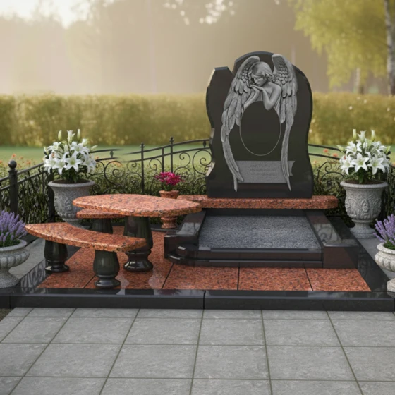 Форма стелы с ее арочным силуэтом и центральным резным изображением скорбящего ангела предоставляет широкие возможности для размещения портрета усопшего. Наиболее гармонично портрет будет смотреться в верхней части стелы, над фигурой ангела, или же в центральной части, если изображение ангела будет смещено вниз или выполнено в виде барельефа. Зеркальная полировка поверхности идеально подходит для высококачественной гравировки портрета и эпитафии, обеспечивая четкость линий и долговечность изображения. Благодаря гладкой поверхности камня, портрет будет выглядеть максимально выразительно, а отражающая способность полировки придаст ему особую глубину и объем. Выбор шрифта для эпитафии также играет важную роль: классические, строгие шрифты подчеркнут серьезность и торжественность момента, в то время как более изящные и каллиграфические могут добавить нотку индивидуальности. Этот мемориальный комплекс — это не просто камень, это архитектурное произведение, призванное сохранить светлую память о человеке и стать местом утешения для близких. Он станет вечным свидетельством любви и уважения, воплощенным в прочном и прекрасном материале.