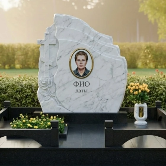• Аксессуары: Композиция дополнена точеной каменной вазой, выполненной в едином стиле с основным монументом, что позволяет поддерживать эстетический порядок на месте захоронения.