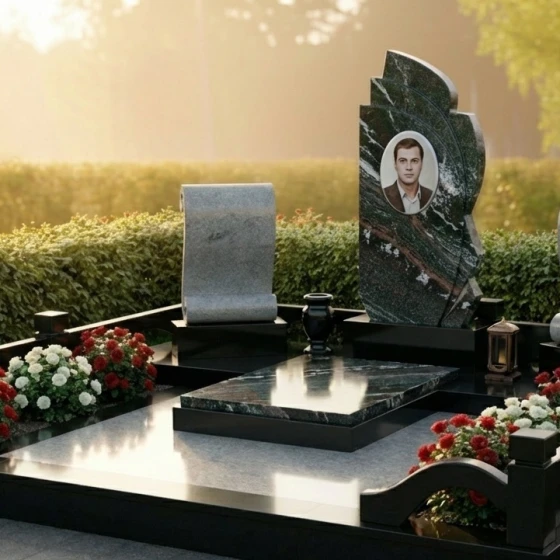 Мы предлагаем эту модель в 8 цветовых решениях, что позволяет подобрать идеальный камень, который наилучшим образом отразит индивидуальность и характер усопшего. Вы можете выбрать гранит амфиболит с его уникальными вкраплениями, благородный гранит Балтик грин с глубокими зелеными оттенками, мистический гранит Блю Перл с переливами синего, классический гранит Габбро-диабаз с его насыщенным черным цветом, теплый гранит Дымовский, величественный гранит Лезниковский с красными нотами, светлый гранит Мансуровский или изысканный мрамор Тассо с его нежными жилами. Каждый из этих камней обладает своей уникальной энергетикой и эстетикой, позволяя создать по-настоящему персонализированный мемориал.