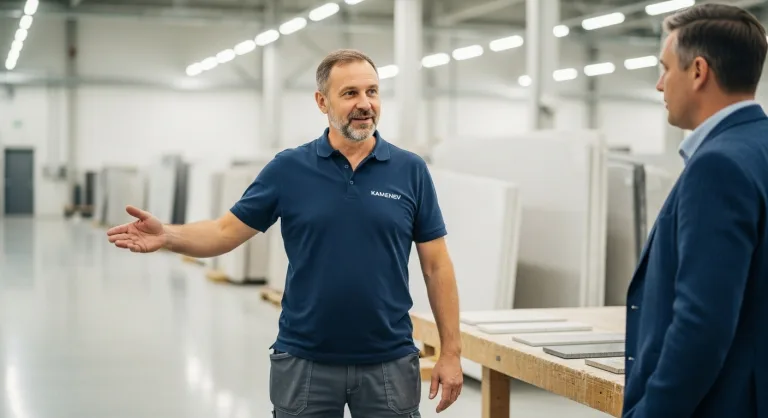 Эта уверенность начинается задолго до того, как камень попадает в руки наших мастеров. Она зарождается в карьерах, на производственных линиях и в лабораториях наших партнеров.